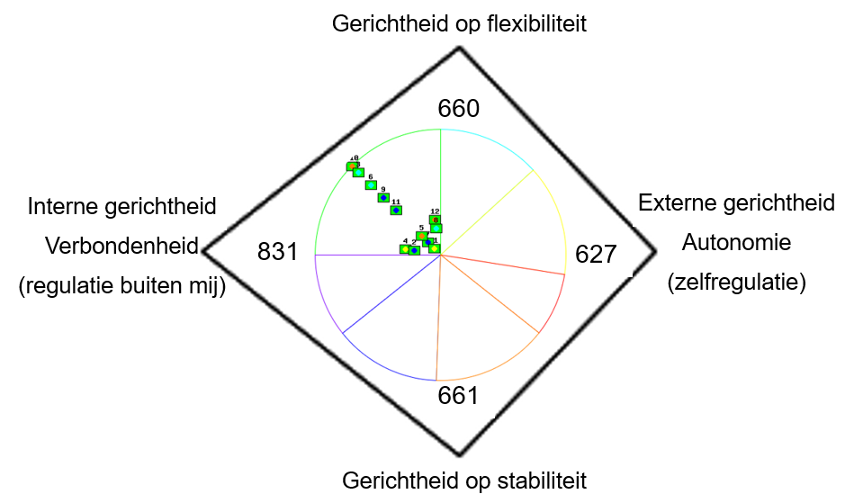 De waardenintensiteit is een spiegel voor de teammindset. De staafgrafiek geeft aan welke waarden, bewust of onbewust, de mentale dynamiek en intensiteit in het teamreferentiekader beïnvloeden.